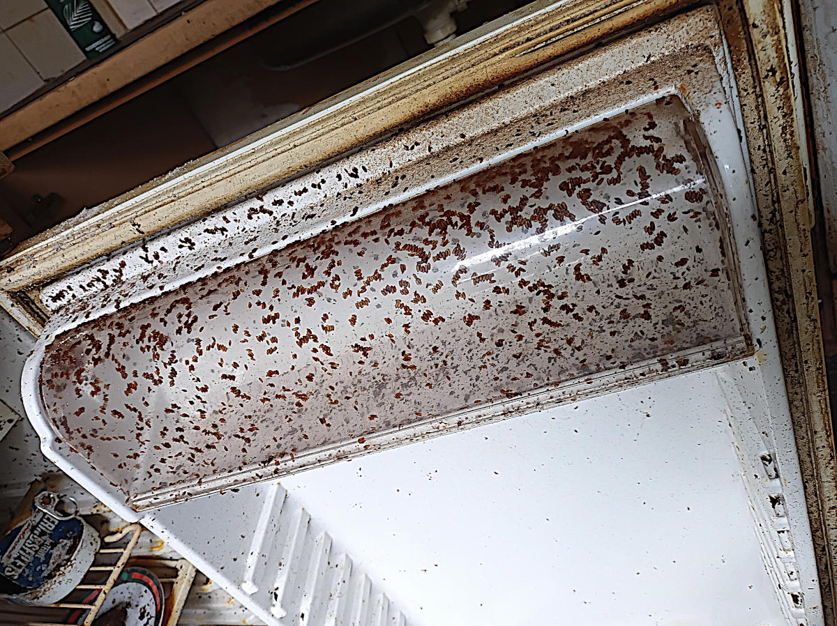 Tatortreinigung Kühlschrank voll mit Insekten Puppen Hüllen