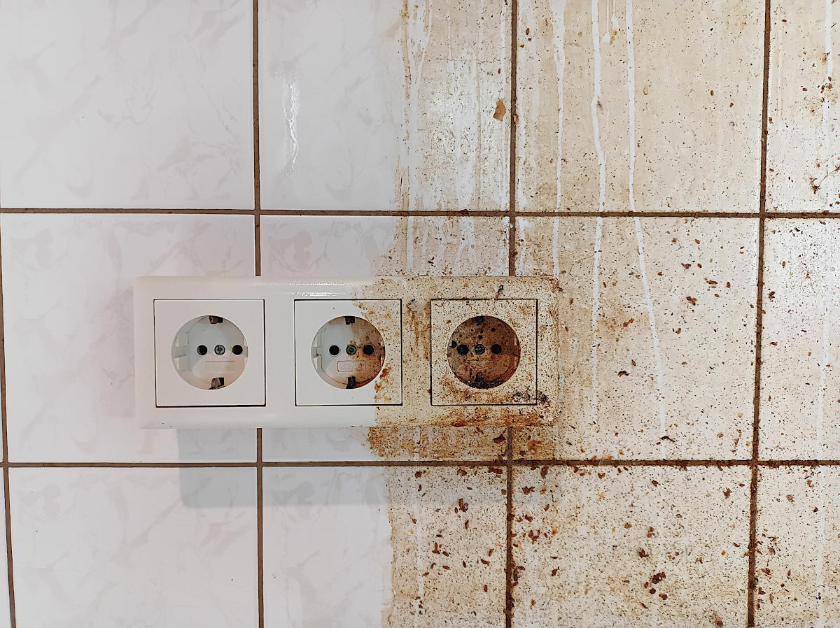 Tatortreinigung Leichenfundort Kuechen Steckdosen Nachher (links) Vorher (Rechts)