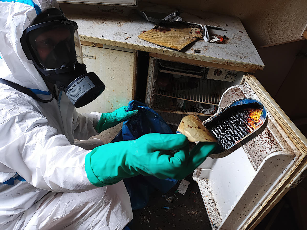 Tatortreinigung Räumung vom Kühlschrank unter Vollschutz