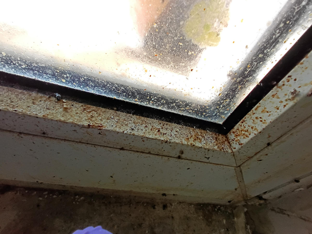 Leichenfundort Fenster mit Fliegenkot Vor und Nach der Tatortreinigung