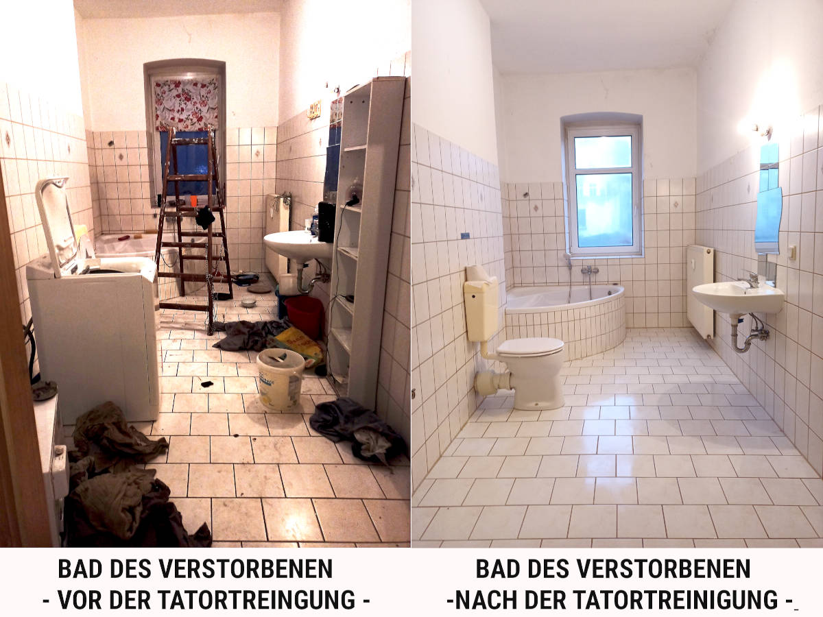 Leichenfundort Badezimmer Vor und nach der Tatortreinigung