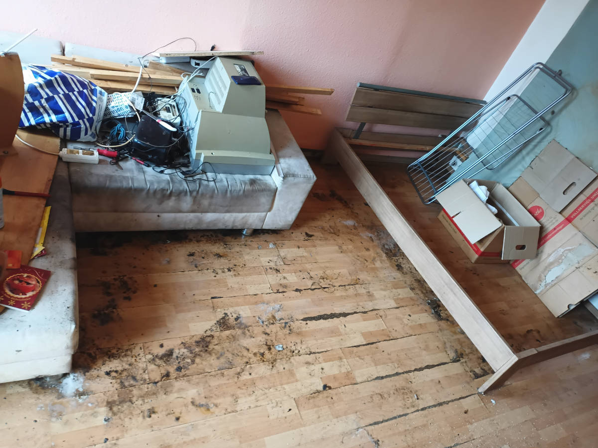 Fotos von einer (von mir durchgeführten) Dekontamination, Reinigung, Desinfektion und Geruchneutralisation (O3 Ozon) einer stark vermüllten Messiwohnung in Thüringen