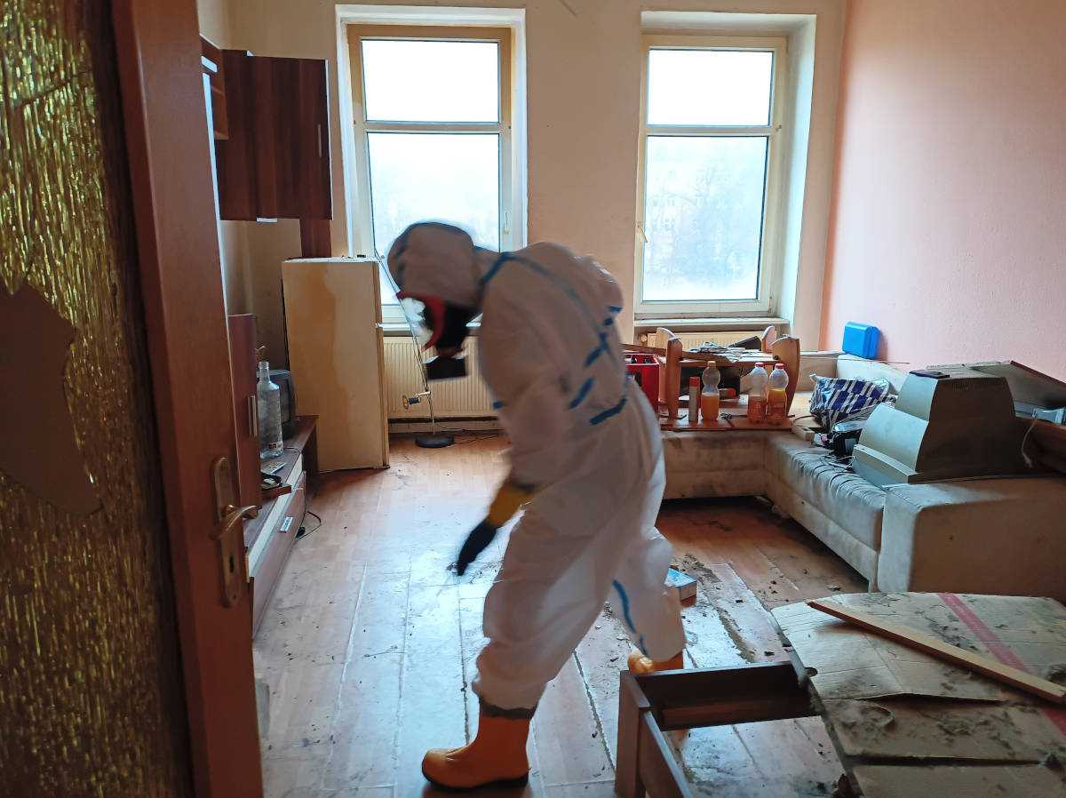 Nach Abschluss der Ozon-Desinfektion Räumung des Leichenfundortes