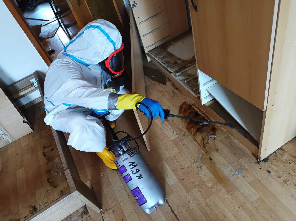 Die wichtigste Aufgabe eines Tatortreinigers besteht darin, Kontaminationen einzudämmen und zu beseitigen, sowie eine fachgerechte Schlussdesinfektion durchzuführen.