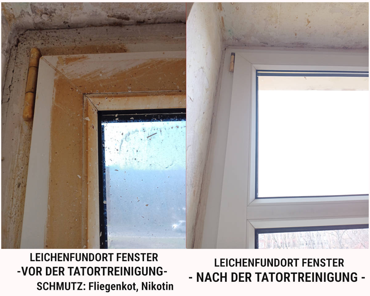 Leichenfundort Fenster Verschmutzung Vor und nach der Tatortreinigung